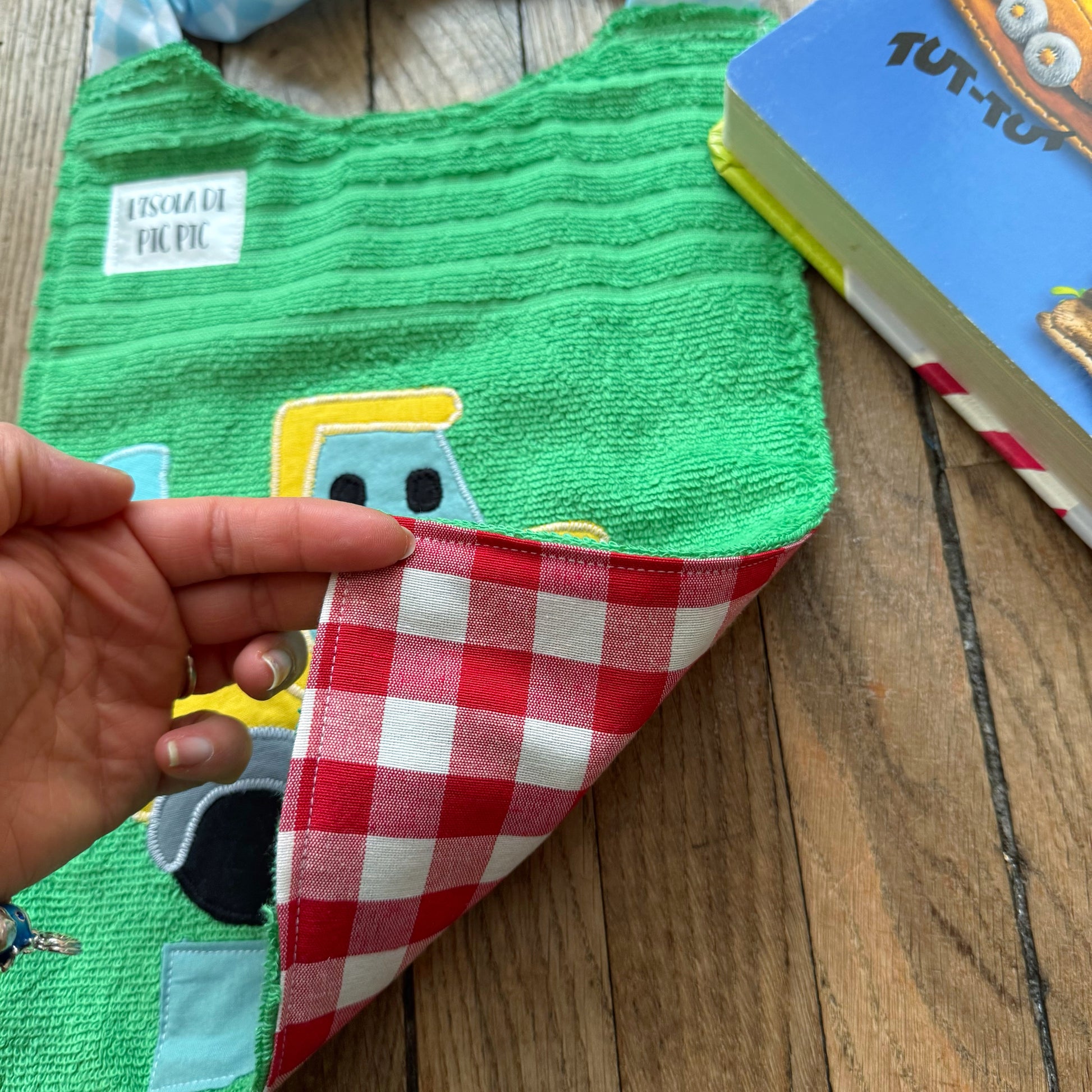 Bavaglino perfetto per l’asilo nido e la scuola materna in cotone e spugna super assorbente.
