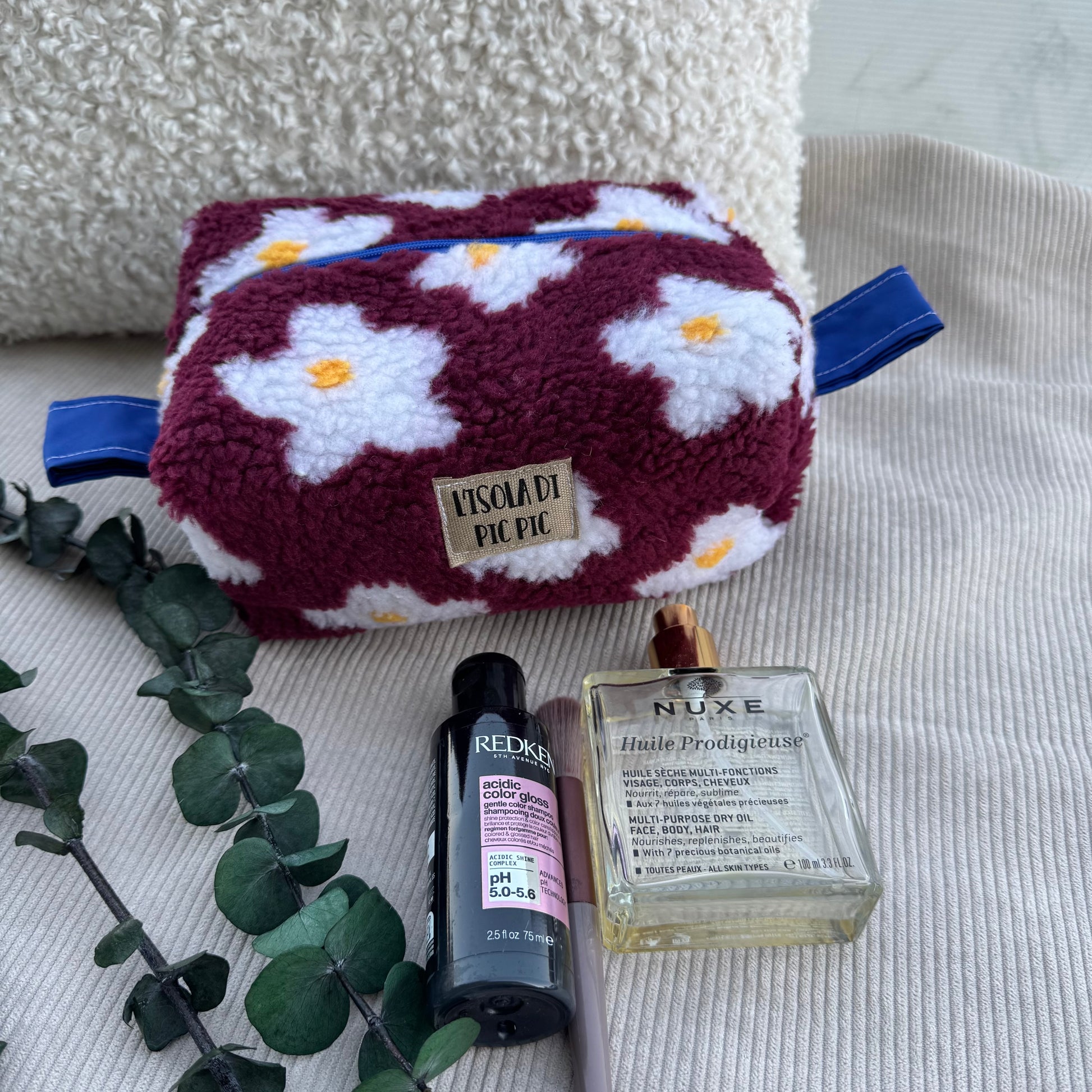 - come pochette da borsa o zaino, per tenere tutto in ordine con un tocco morbido ed elegante